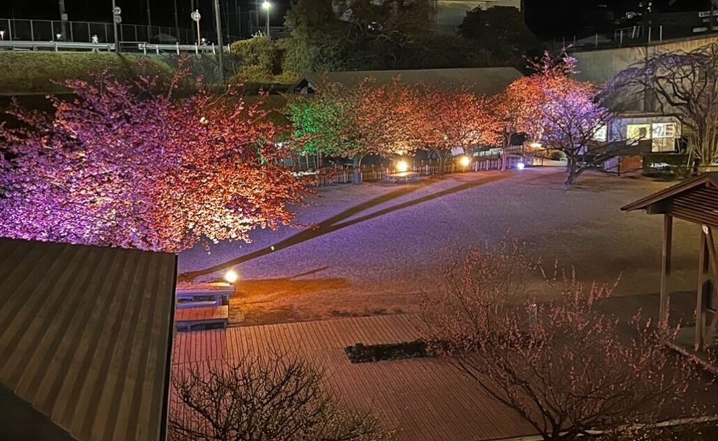 2月14日より、ホテルから徒歩約200mの「稲取文化公園」にて河津桜のライトアップが開催されています。