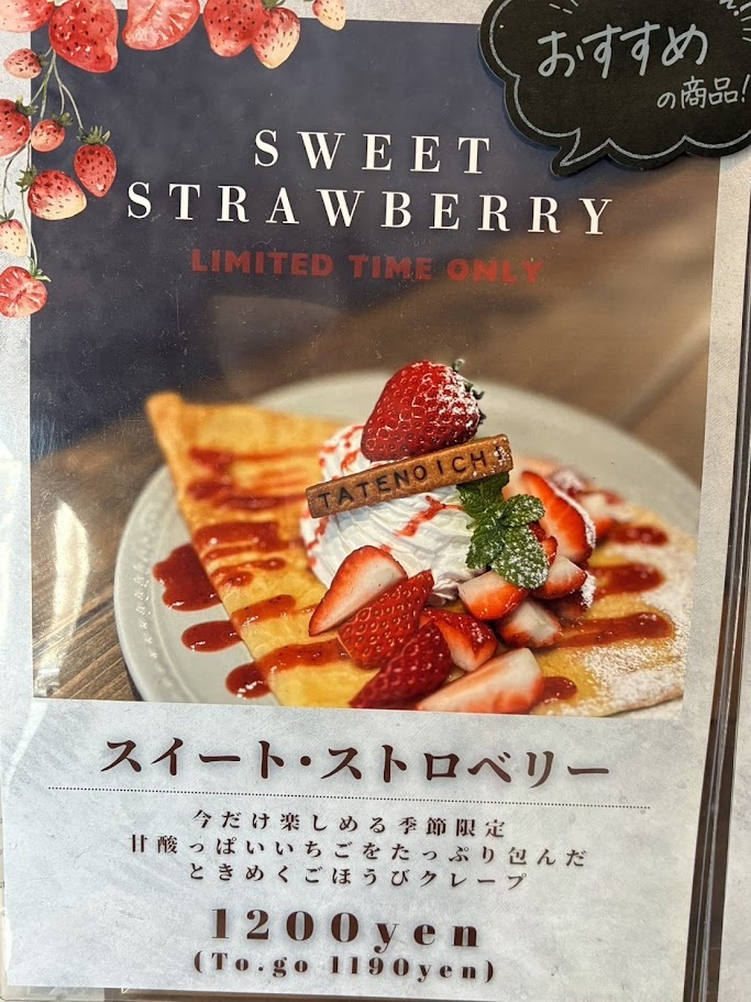 地元で人気のカフェ「TATENOICHI」さんで、期間限定のクレープが登場しています。今回紹介するのは、春らしさ満点の2種類。
