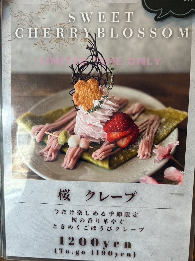 ひとつは、見た目も華やかな「桜クレープ」。ほんのり香る桜の風味とやさしい甘さが絶妙で、まるで春そのものを味わっているかのよう。季節感を大切にした一品で、写真映えも抜群です。